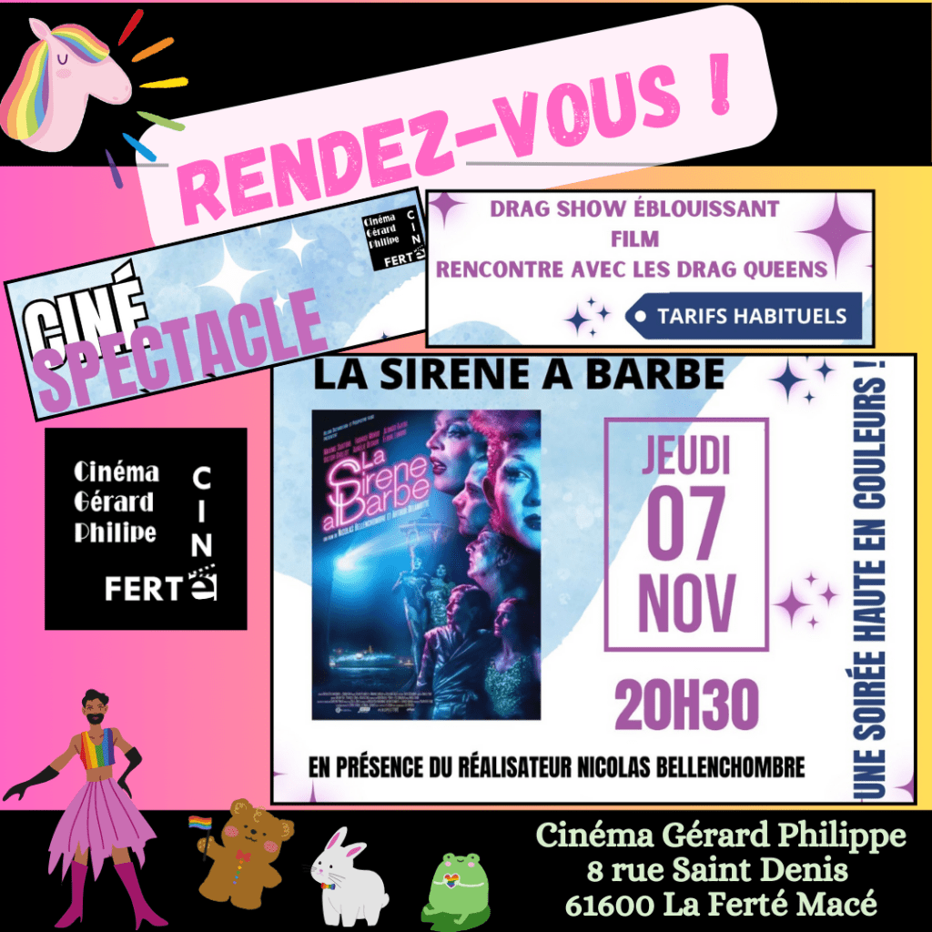 Rdv le 7 novembre à 20H30 au cinéma Gérard Philippe à La Ferté Macé ! . #cineferte #dragqueens #sireneabarbe #ornenciel #orne #LGBT